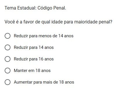 Aqui esta um exemplo de pergunta do nosso questionário.